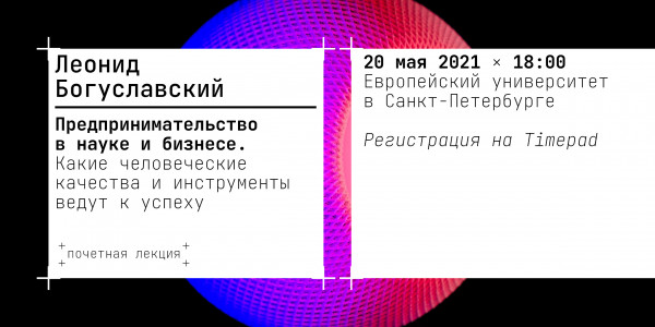 20 05 Леонид Богуславский Лекция Леонида Богуславского «Предпринимательство в науке и бизнесе. Какие человеческие качества и инструменты ведут к успеху»