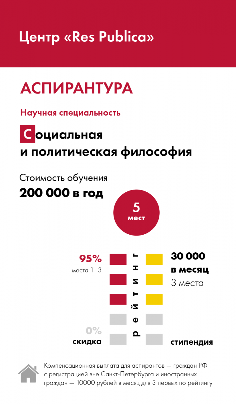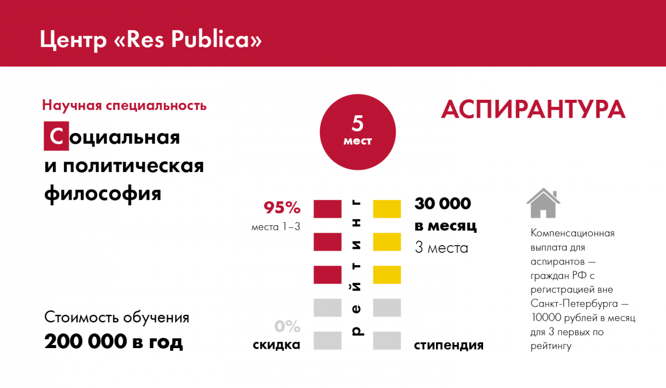 Иccледовательский центр Res Publica открывает набор на образовательную программу аспирантского уровня по специальности 5.7.7. Социальная и политическая философия. Наше желание открыть образовательную программу аспирантского уровня вызвано стремлением к дальнейшему развитию уже сложившейся вокруг центра научной школы и созданию более широкой академической среды по тематическим направлениям центра — в первую очередь современных исследований в перспективе социально-политической теории и интеллектуальной истории классического республиканизма, а также исследовательской парадигмы «теории практик».